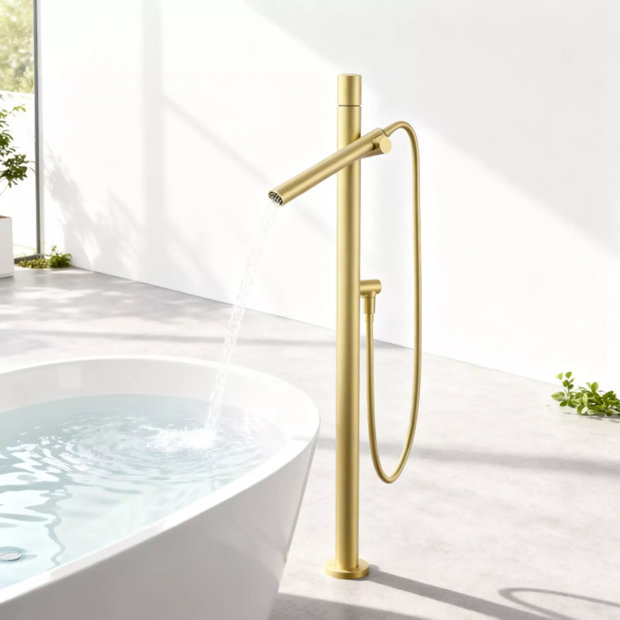 Brushed Gold Freestanding Tub Filler Manufacturer – Luxury Gold Bath Tap – OEM/ODM Supply