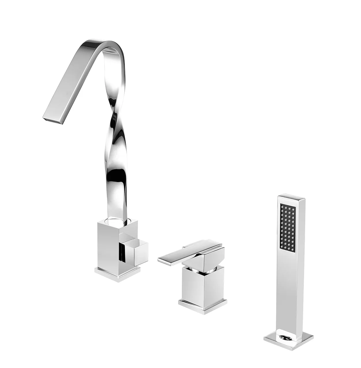 Smooth handle operation and a convenient hand shower : Landonbath deck mounted bathtub faucets are known for their durability and ease of use.