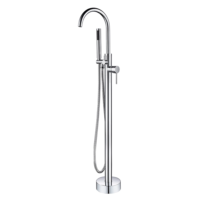 Introducing our Curved Spout Freestanding Chrome Bathtub Faucet with Handheld Sprayer—a harmonious blend of elegant design and exceptional functionality for contemporary bathrooms. Crafted from high – grade brass with a polished chrome finish, this faucet brings a touch of opulence to any bathing space. Its freestanding structure, highlighted by a gracefully curved spout, seamlessly complements various bathtub styles. The integrated handheld sprayer adds a new level of convenience to your bathing routine, making tasks like rinsing the tub or washing hair effortless. Whether you’re upgrading a residential bathroom to create a spa – like retreat or working on a commercial project that demands top – tier aesthetics and performance, this faucet is an outstanding choice.