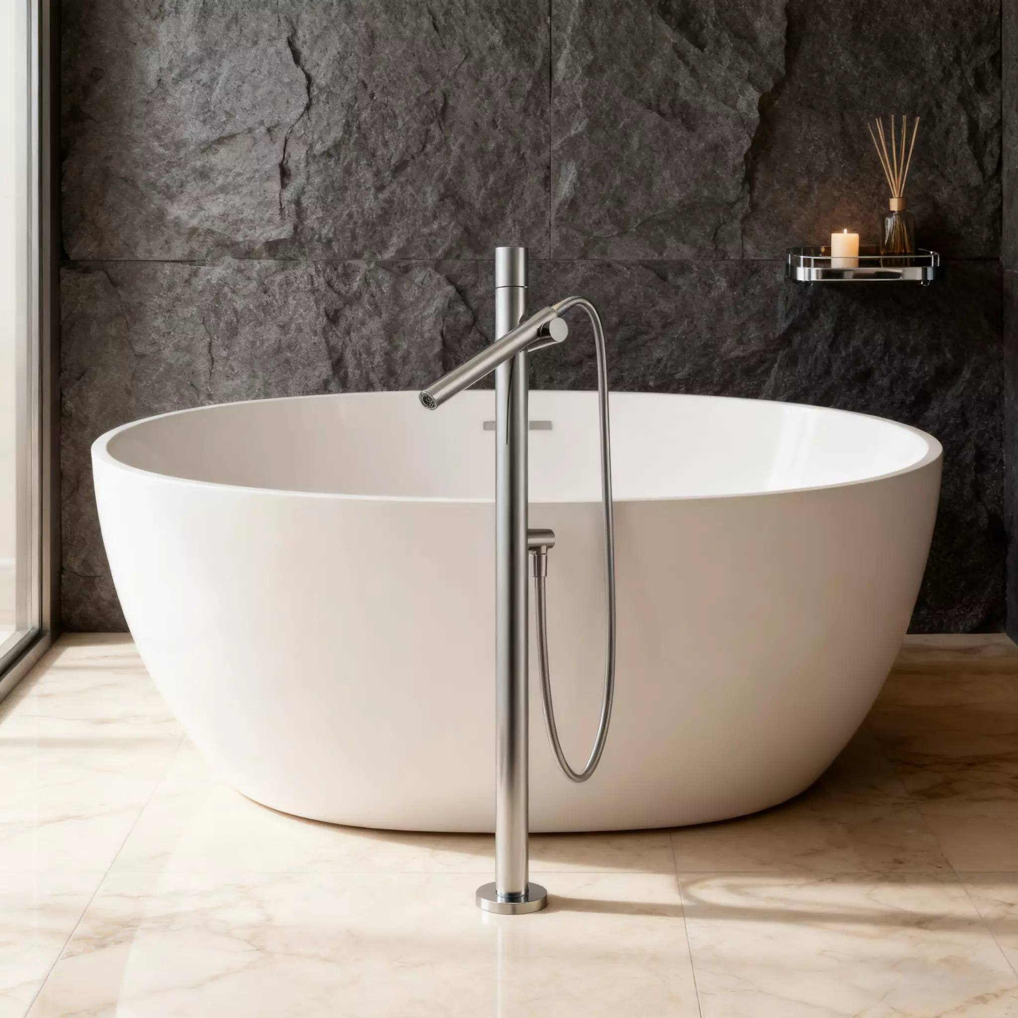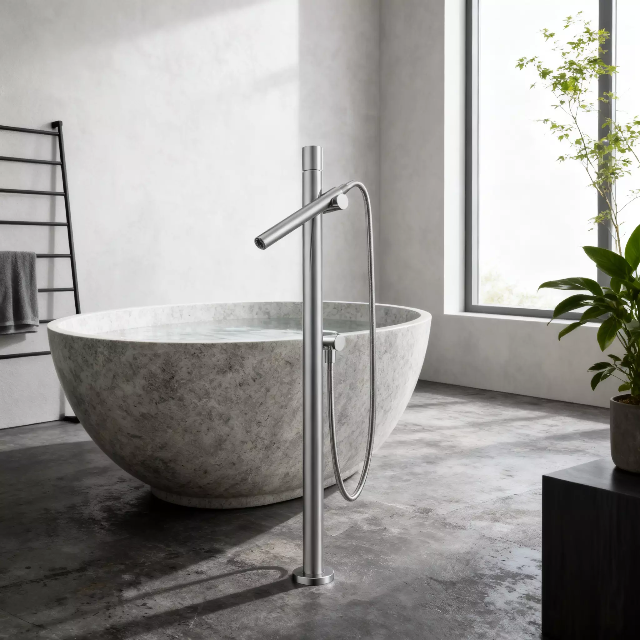 This sleek round freestanding bathtub faucet with handheld sprayer is highly versatile and suitable for a wide array of projects:
