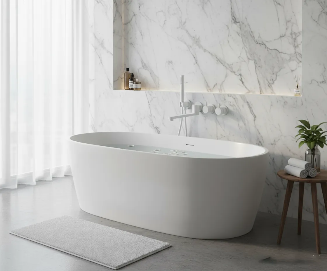 DF-3806 Wall-Mounted Bathtub Faucet blends a solid brass in-wall valve with 304 stainless steel exterior trim, creating a sleek, durable, and modern centerpiece for contemporary bathrooms. Its matte black finish offers a refined aesthetic, while the included hand shower adds practical flexibility.