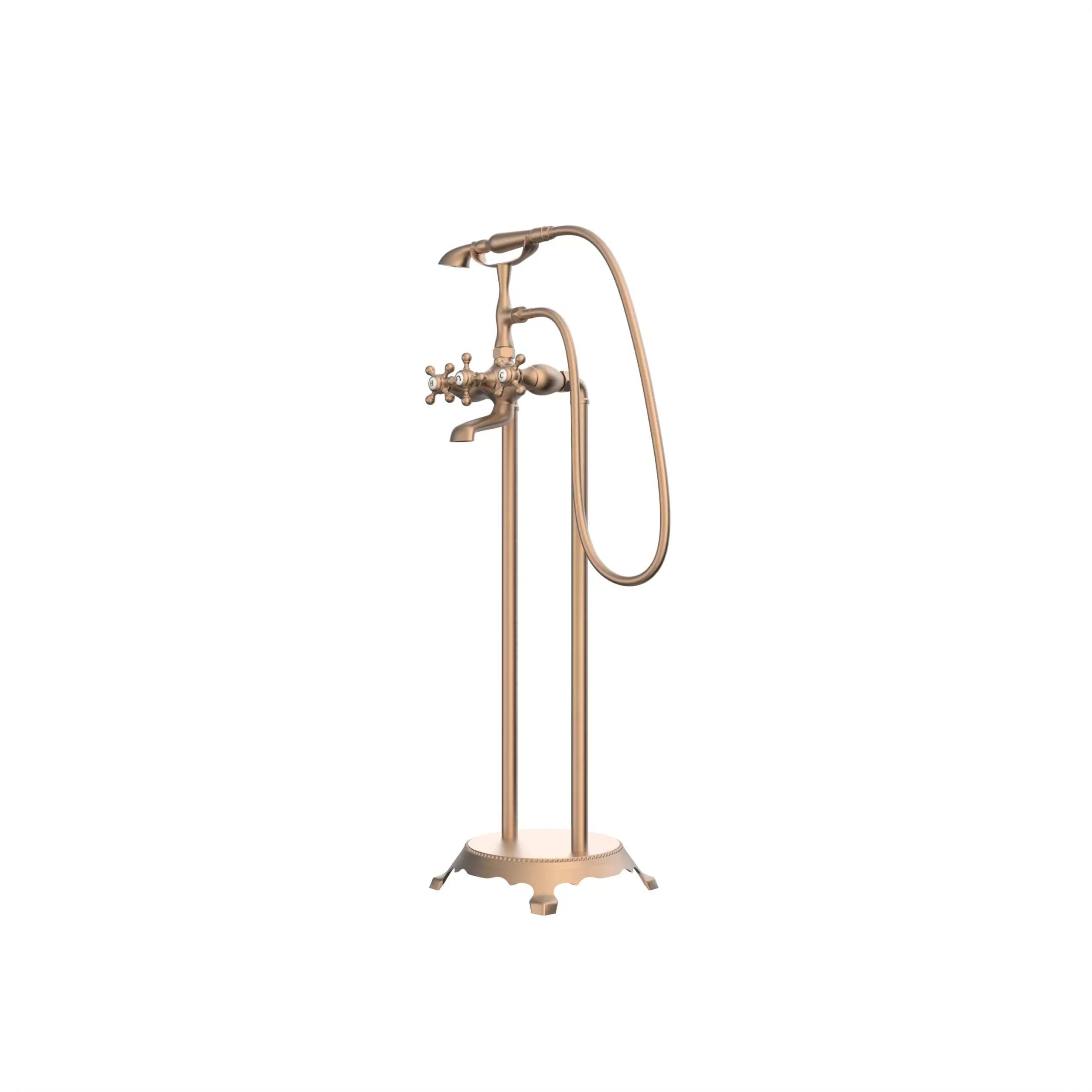 Engineered for comfort and style, the Solid Brass Freestanding Tub Faucet with Hand Shower offers a superior bathing experience. Its arched design radiates modernity and grace, while the solid brass body and substantial weight provide a luxurious feel and enduring durability.