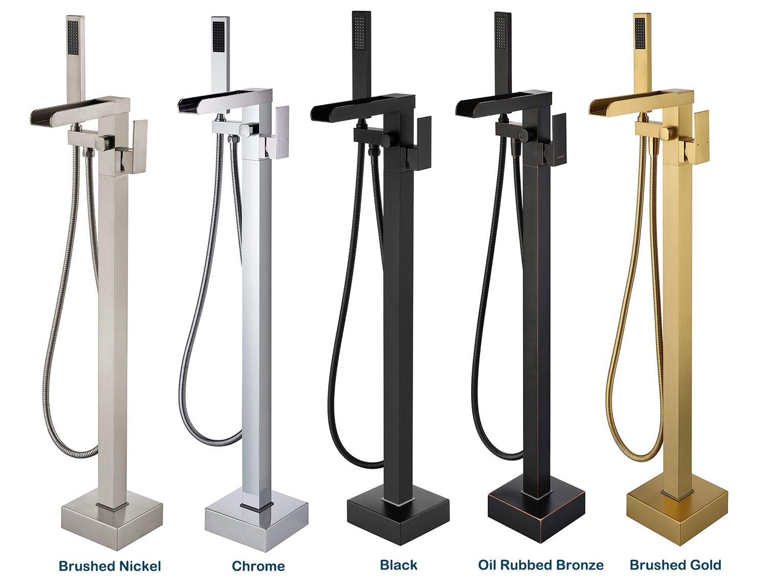 Engineered for comfort and style, the Solid Brass Freestanding Tub Faucet with Hand Shower offers a superior bathing experience. Its arched design radiates modernity and grace, while the solid brass body and substantial weight provide a luxurious feel and enduring durability.