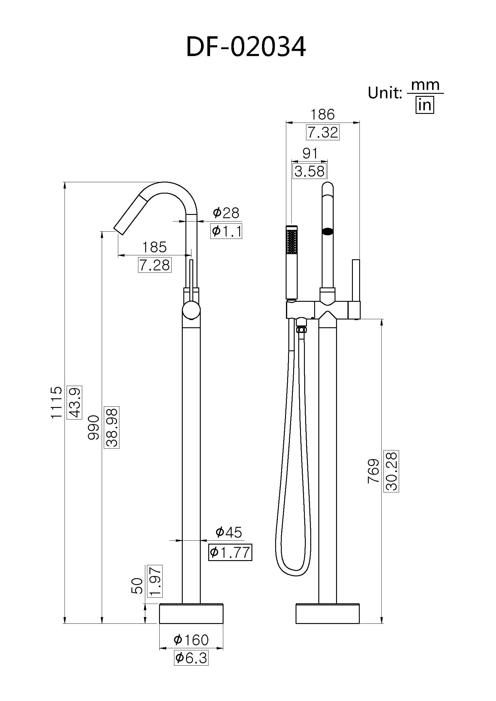 Engineered for comfort and style, the Solid Brass Freestanding Tub Faucet with Hand Shower offers a superior bathing experience. Its arched design radiates modernity and grace, while the solid brass body and substantial weight provide a luxurious feel and enduring durability.