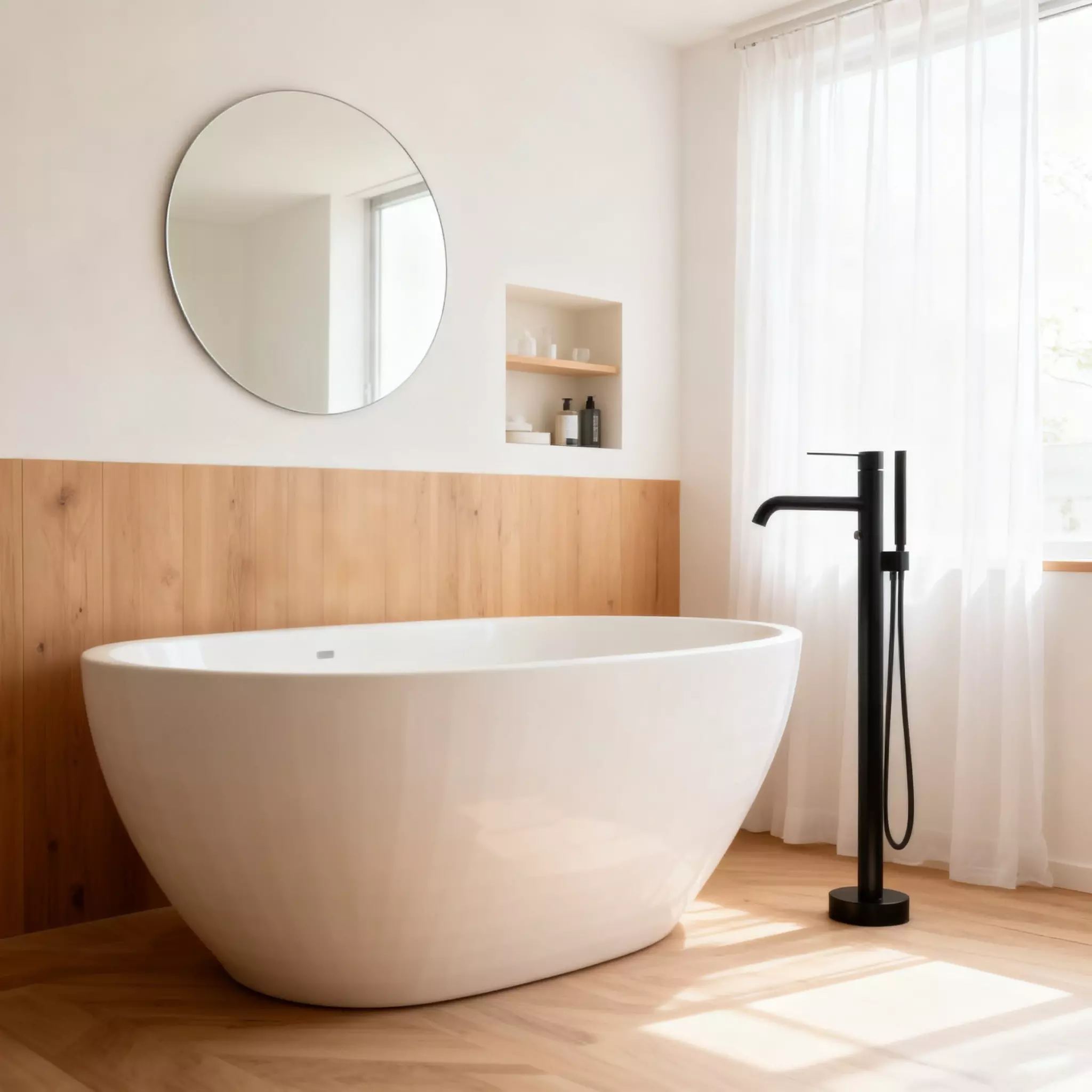 Mount on finished floor using tripod stand or concealed rough-in box. Recommended pressure 0.3 – 0.6 MPa. Clean the surface regularly with a soft cloth and mild soap. Avoid acidic or alcohol-based cleaners to preserve the matte finish.