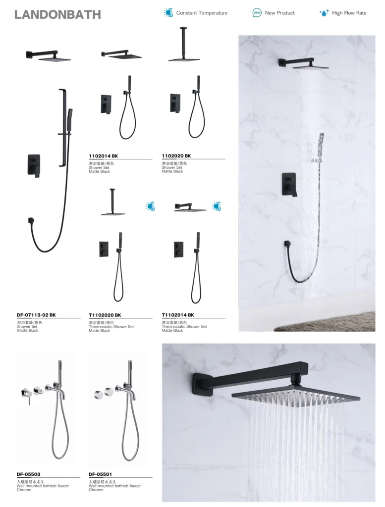 Landonbath Thermostatic shower system combines modern design and functional convenience in one complete set, with a rainfall showerhead, handheld shower for a cozy shower to get a refreshing mind every day.